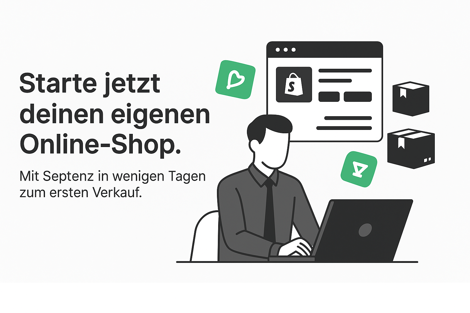Mit Septenz erhältst du nicht nur einen professionell eingerichteten Online-Shop, sondern auch die passenden Produkte, ein modernes Design und alle wichtigen Tools für deine ersten Verkäufe. So kannst du dich voll auf dein Wachstum konzentrieren – wir übernehmen den Rest.